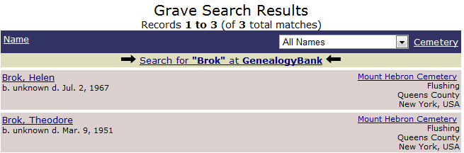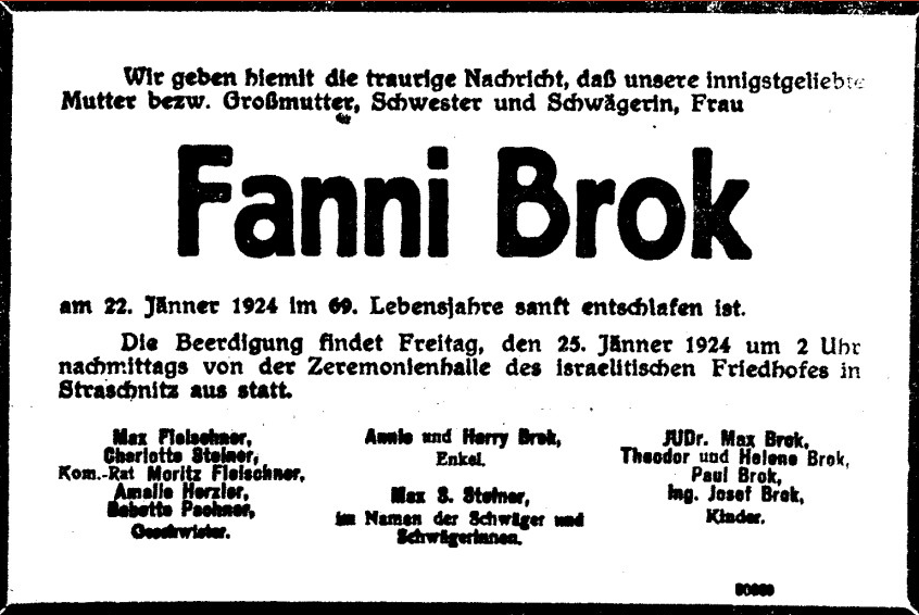 | Parents: | Salomon Brok and Frantiska Perutz |